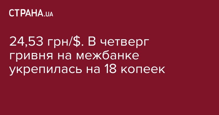 В сравнении со вчерашним курсом в 24,70 грн/дол валюта подешевела на 0,73%.