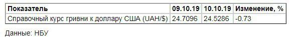 Справочный курс гривни к доллару США на межбанковском валютном рынке в обед составил почти 24,53 грн/дол. Об этом свидетельствуют данные НБУ по состоянию на 12:00 10 октября.