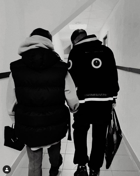Ани Лорак опубликовала фотографию, на которой пара позирует, стоя спиной к камере. Певица и продюсер, держась за руки, идут по коридору. На них толстовки, а в руках у них сумки.