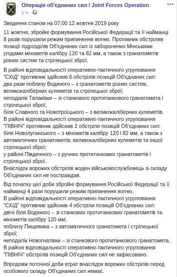 Скриншот: Facebook/Операція об'єднаних сил / Joint Forces Operation