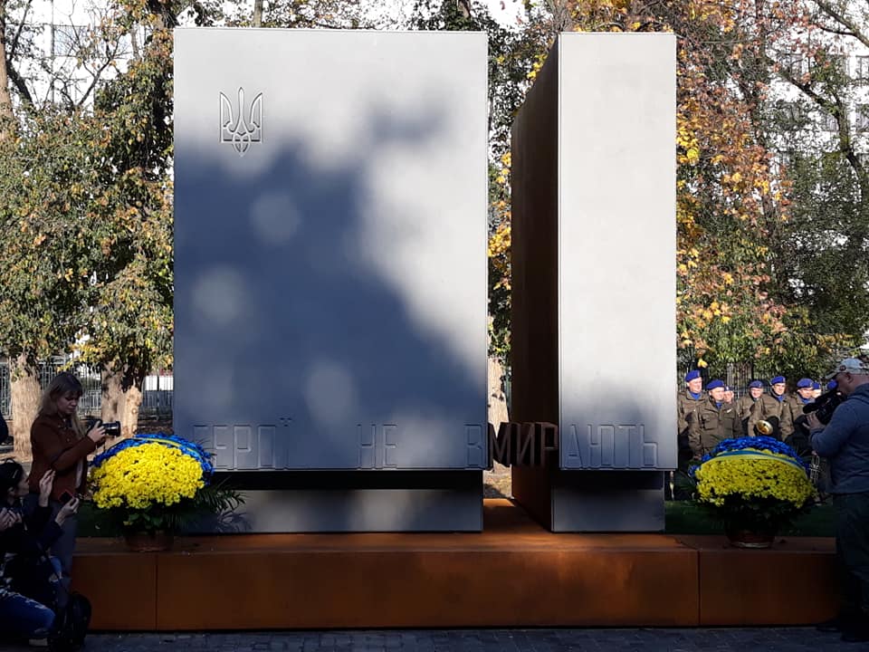 Монумент представляет собой куб с надписью "Герои не умирают". По словам губернатора Юлии Светличной, он символизирует целостность и силу государства.