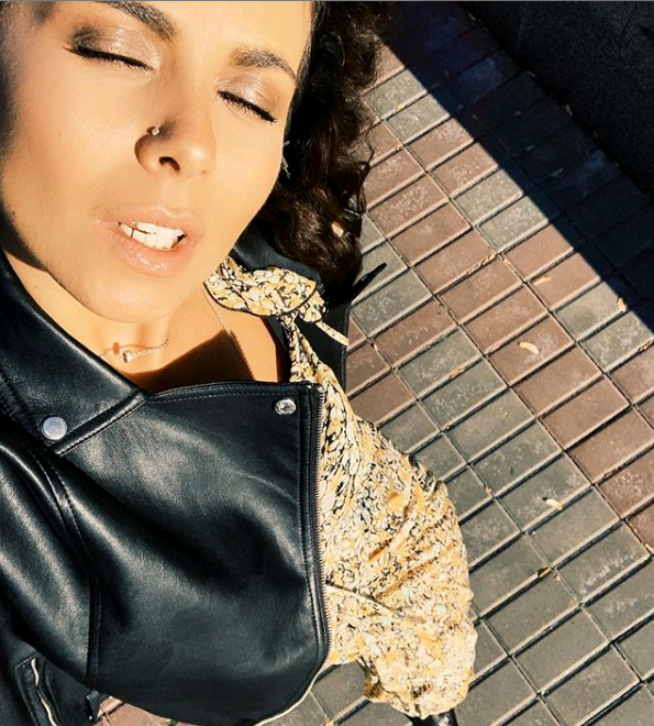 Второе фото - это селфи, на котором звезда по-лебединому изогнула шею и зажмурилась из-за яркого солнца.