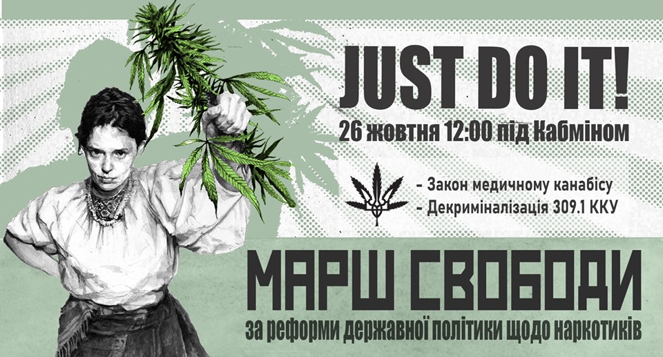 26 октября в Киеве пройдет "Конопляный марш свободы - Just Do It!", участники которого выступят за легализацию медицинской марихуаны в Украине и декриминализацию незначительных проступков, связанных с хранением каннабиса без цели сбыта.