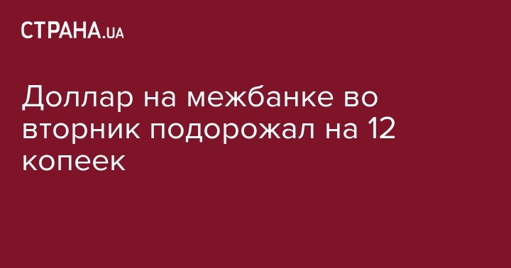 Доллар на межбанке во вторник подорожал на 12 копеек
