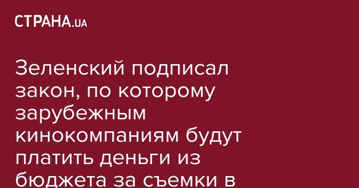 Президент Украины Владимир Зеленский подписал закон, по которому зарубежным кинокомпаниям будут платить деньги за съемки в Украине, сообщает пресс-служба глвавы государства в среду вечером.