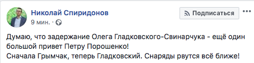"Думаю, что задержание Олега Гладковского-Свинарчука - еще один большой привет Петру Порошенко!