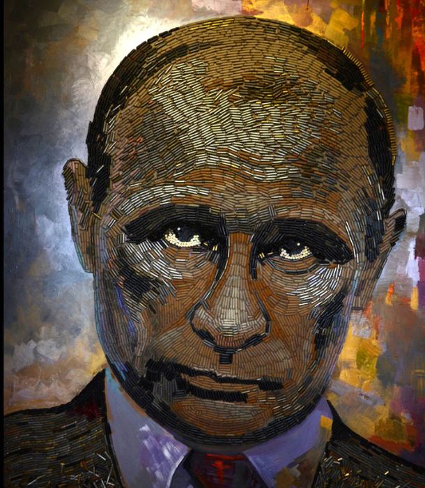 Речь о картине "Лицо войны", которую приобрел Гладковский-старший. Это портрет Владимира Путина, выполненный из гильз. В декларации бывшего чиновника она отсутствует.