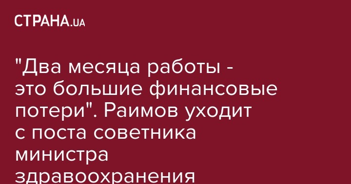 Дмитрий Раимов, который 2 августа 2019 года был назначен советником Министра здравоохранения Украины Зоряны Скалецкой, уходит с должности. Об этом он рассказал "Стране".