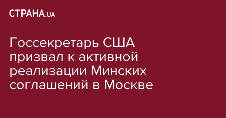 "Что касается Украины, госсекретарь призвал к активизации переговоров по реализации минских договоренностей, особенно положений в области безопасности", - указано в официальном сообщении Госдепа США.