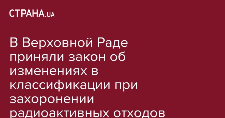 В Верховной Раде приняли закон об изменениях в классификации при захоронении радиоактивных отходов