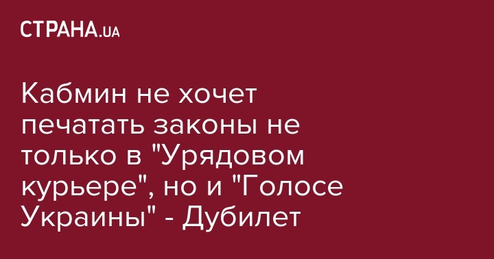 Кабмин не хочет печатать законы не только в "Урядовом курьере", но и "Голосе Украины" - Дубилет
