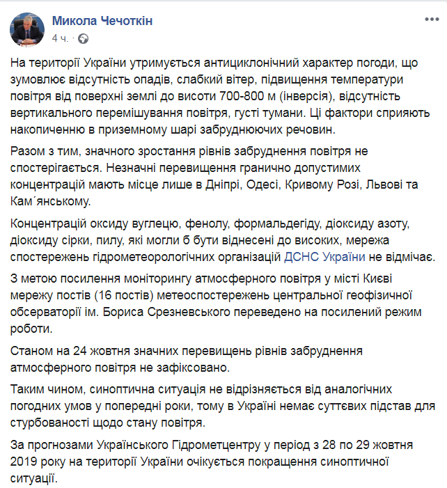 В целом, синоптическая ситуация не отличается от погодных условий в предыдущие годы. Поэтому в Украине нет оснований для беспокойства о состоянии воздуха.