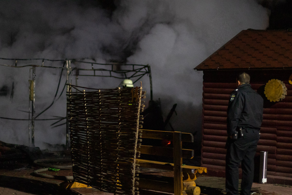 Кафе "Колиба" вспыхнуло в Киевском Гидропарке  в ночь на понедельник, 28 октября. Огонь запылал в одной из беседок на территории заведения и начал быстро распространяться. При пожаре взорвался один из газовых баллонов. Площадь возгорания достигла 50 квадратных метров. Об этом сообщает "Информатор".