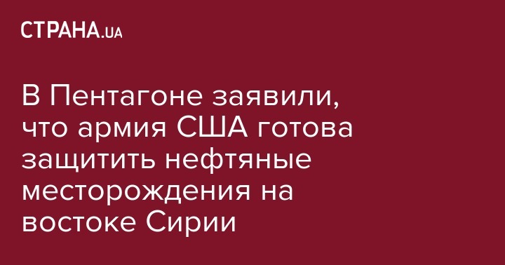США намерены защитить нефтяные месторождения на востоке Сирии, в том числе от террористической группировки ИГИЛ, и ответят на любую угрозу жизни своих военных. Об этом заявил в понедельник шеф Пентагона Марк Эспер, пишет Интерфакс.