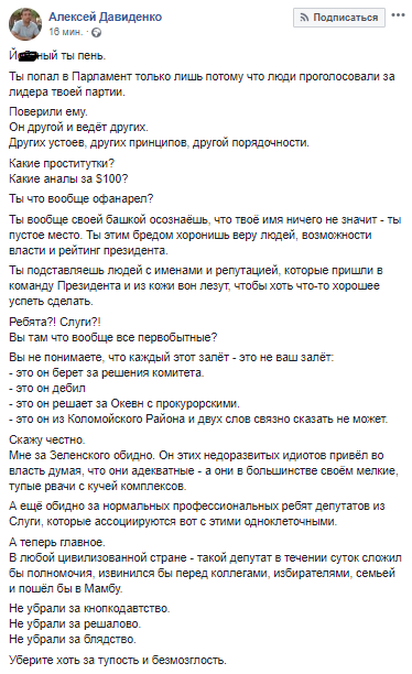 Уберите хоть за тупость и безмозглость", – написал экс-депутат Киевсовета Алексей Давиденко.