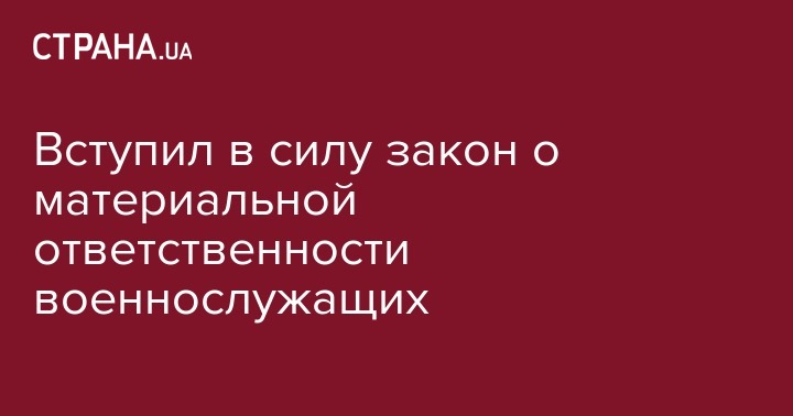31 октября вступил в силу Закон № 160-IX "О материальной ответственности военнослужащих и приравненных к ним лиц за ущерб, нанесенный государству". Об этом сообщается на сайте Верховной Рады.