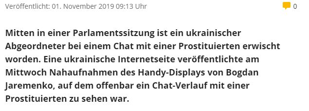 Рассказала о скандале и австрийская газета Salzburg 24: "Посреди парламентской сессии украинский депутат был пойман в чате с проституткой. На фотографиях видно, как Яременко спрашивал об условиях встречи. "100 долларов за час, 150 за два", - ответила его собеседница".
