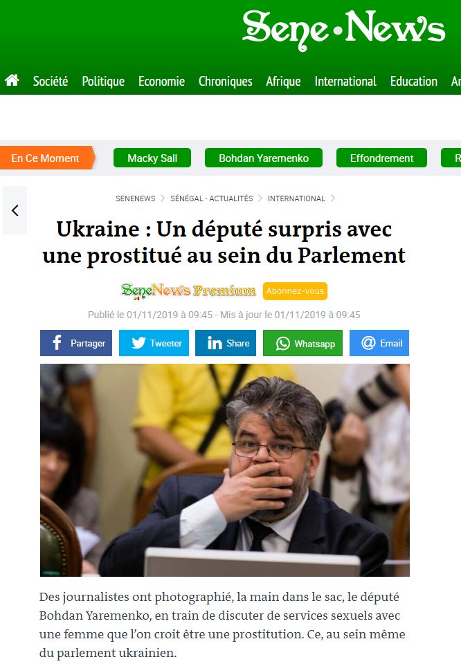 Новости о происходящем в сессионном зале украинского парламента дошли даже до Сенегала. Примечательно, что предыдущая новость об Украине на сенегальском новостном сайте Sene News касалась победы Зеленского на выборах президента.