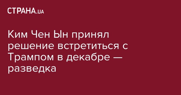 Лидер КНДР Ким Чен Ын, вероятно, принял решение встретиться с президентом США Дональдом Трампом в декабре. Об этом передает агентство Рёнхап со ссылкой на данные разведки Южной Кореи.