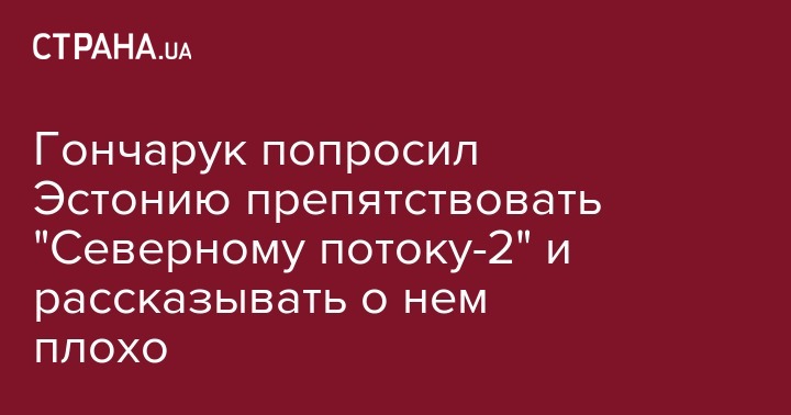 Премьер-министр Алексей Гончарук призвал министра иностранных дел Эстонии Урмаса Рейнсалу (Urmas Reinsalu) оказать противодействие "Северному потоку-2". Об этом говорится в сообщении пресс-службы украинского правительства.