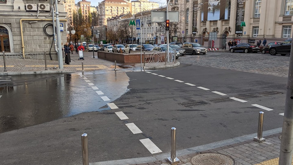 Согласно обнародованному пользователем Игорем Ивановым фото и видео в Facebook, в результате проведения ремонтных работ вода начала затапливать улицу. Отмечается, что вода по неизвестной причине стекает не в ливневки, а в сторону станции метро "Театральная". На видео видно, как пешеходы вынуждены перепрыгивать образовавшиеся лужи.