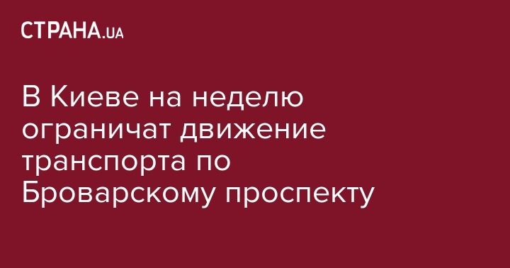 В Киеве на Броварском проспекте ограничат движение транспорта почти на неделю. Об этом сообщает пресс-служба Киевской государственной администрации (КГГА).