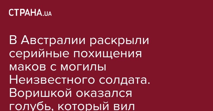В Австралийском военном мемориале города Канберре начали пропадать искусственные маки с могилы Неизвестного солдата. Однако через время выяснилось, что вандалом оказался голубь, который свил себе гнездо в нише под витражом в одном из залов мемориала. Об этом сообщается на сайте учреждения.
