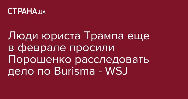 Люди, которые связаны с адвокатом президента США Дональда Трампа - Рудольфом Джулиани - в феврале 2019 года просили пятого президента Украины Петра Порошенко начать расследование в отношении Burisma Group и Хантера Байдена. Об этом вечером в пятницу, 8 ноября, сообщила The Wall Street Journal со ссылкой на свои источники.