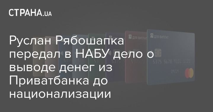 Генеральный прокурор Украины Руслан Рябошапка передал в НАБУ дело о выведении из Приватбанка средств до его национализации. Об этом передает Telegram-канале "Лещенко тут" в четверг, 14 ноября со ссылкой на главу НАБУ Артема Сытника.