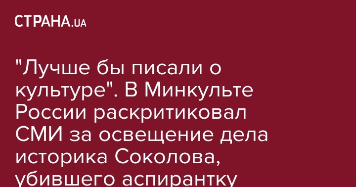 Министр культуры России Владимир Мединский раскритиковал СМИ за освещение подробностей дела историка Олега Соколова, подозреваемого в убийстве своей аспирантки Анастасии Ещенко. Об этом сообщает Интерфакс-Россия.