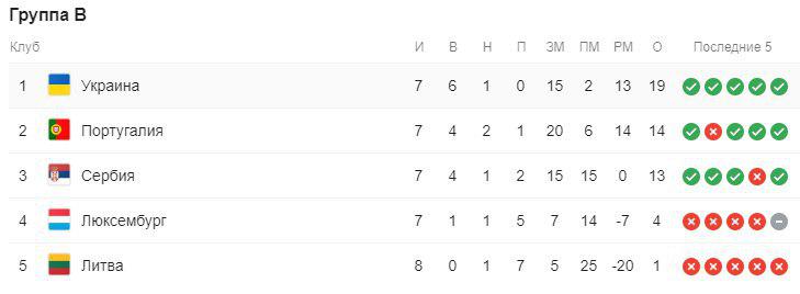 Отметим, что 17 ноября Португалия на выезде завершит отбор матчем с Люксембургом, а Сербия дома дома примет Украину. Для того, чтобы вырвать у португальцев вторую путевку на Евро-2020, сербам необходимо побеждать подопечных Андрея Шевченко и надеяться, что португальцы потеряют очки в Люксембурге.