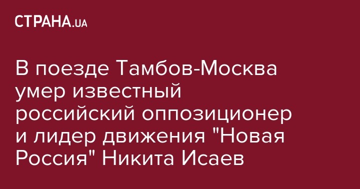 В поезде Тамбов-Москва умер известный российский оппозиционер и лидер движения "Новая Россия" Никита Исаев