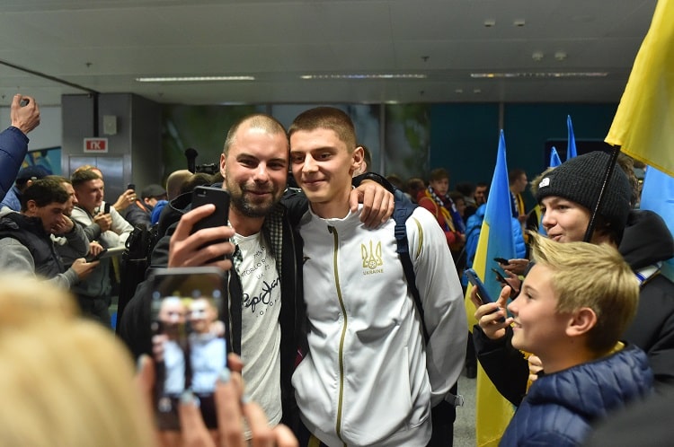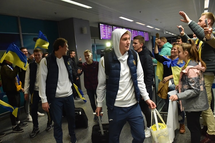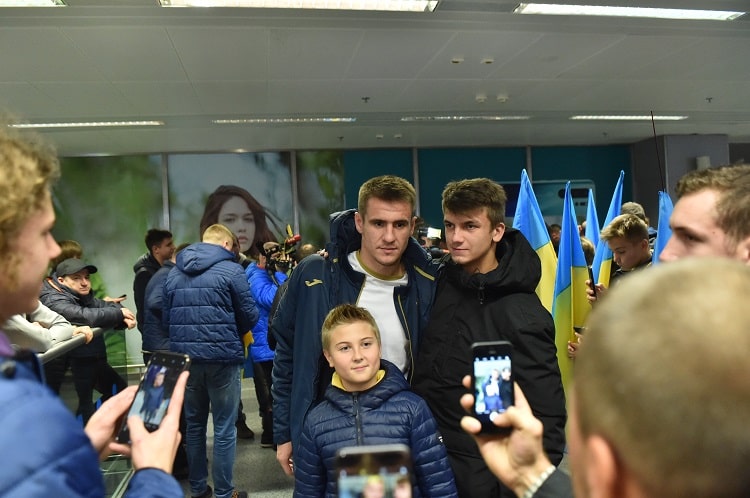 Спортсменов, которые впервые в истории Украины прошли календарный год без единого поражения и квалифицировались в финальную часть чемпионата Европы с первого места в своей отборочной группе, фанаты встретили овацией, флагами и криками: "Молодцы! Украина! Браво!"