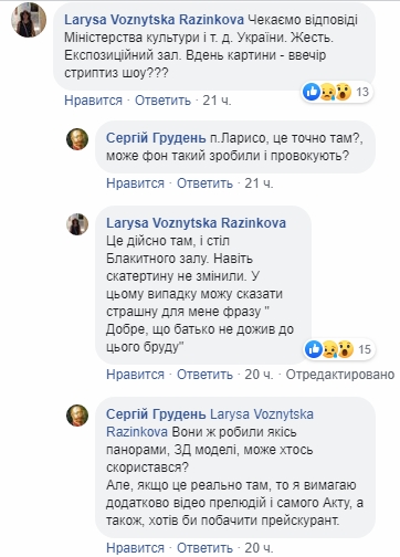 Гендиректор галереи Тарас Возняк заявил, что в съемках рекламы нет ничего плохого, но тоже добавил, что договор был нарушен из-за использования музейных экспонатов. "Съемки проходили в присутствии нашего смотрителя-мужчины, поэтому когда модель переодевалась, он вынужден был выходить из зала. Очевидно, в какой-то из этих моментов она вылезла на стол", - рассказал он.