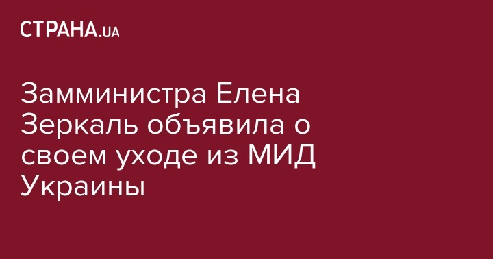 Заместитель министра иностранных дел Украины по вопросам европейской интеграции Елена Зеркаль объявила о том, что скоро покинет свой пост.