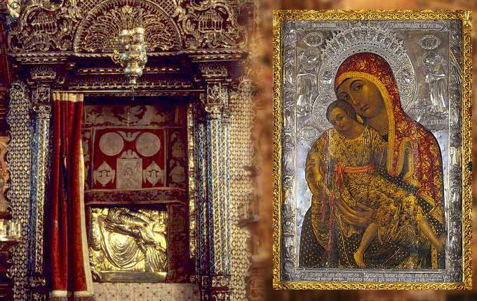 Так выглядит икона Богоматери Киккской в монастыре на Кипре. Фото: cyprus-guru.com