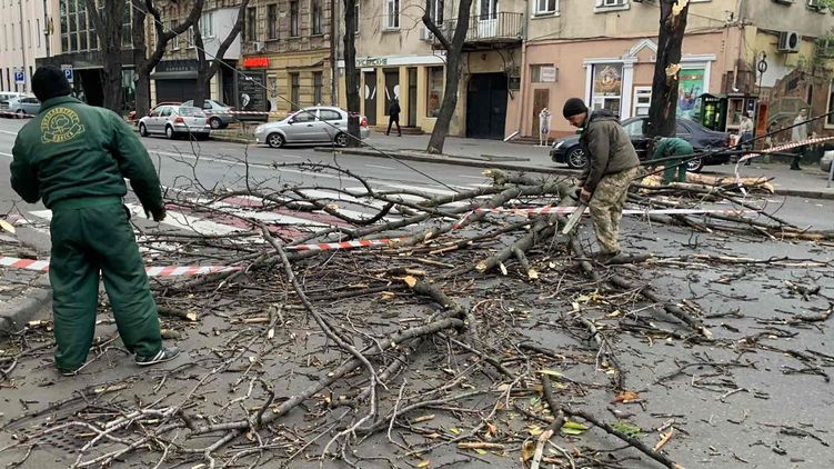 Деревья не выдержали силы ветра на проспекте Добровольского, улице Екатерининской, углу Еврейской и Хаджибейской дороги, улице Химической, в переулке Лунный, на площади Десятого апреля. А на углу Раскидайловской растение рухнуло на автомобиль.