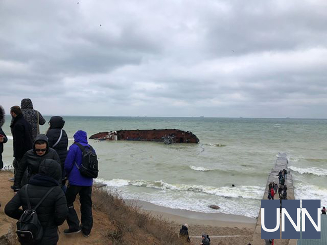 В Одессе на затонувший танкер "Делфи", который потерпел аварию возле пляжа "Ланжерон" на фоне шторма, пришли посмотреть толпа местных жителей. Об этом сообщает УНН.