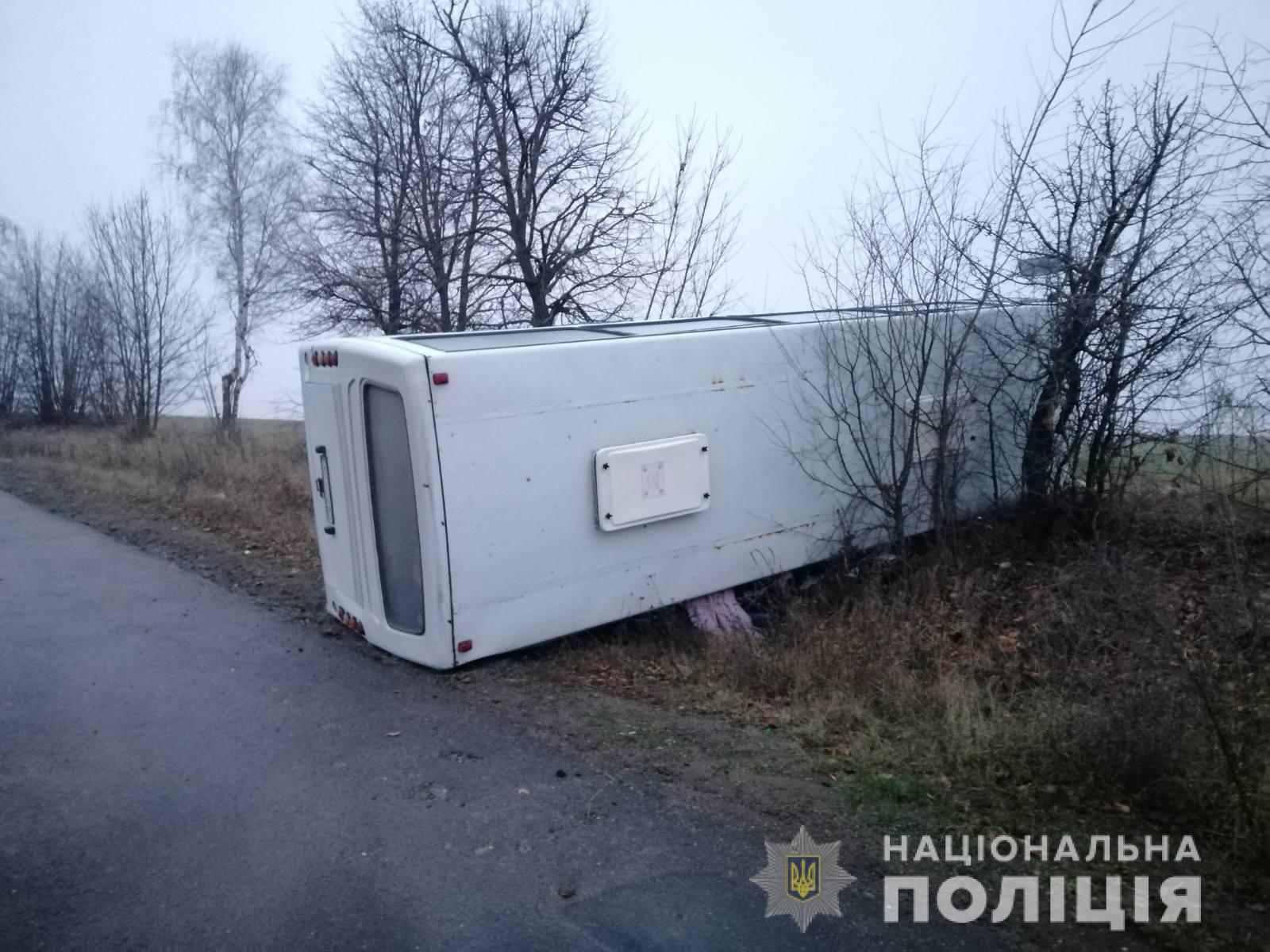 Перевернувшийся автобус. Фото: vn.npu.gov.ua