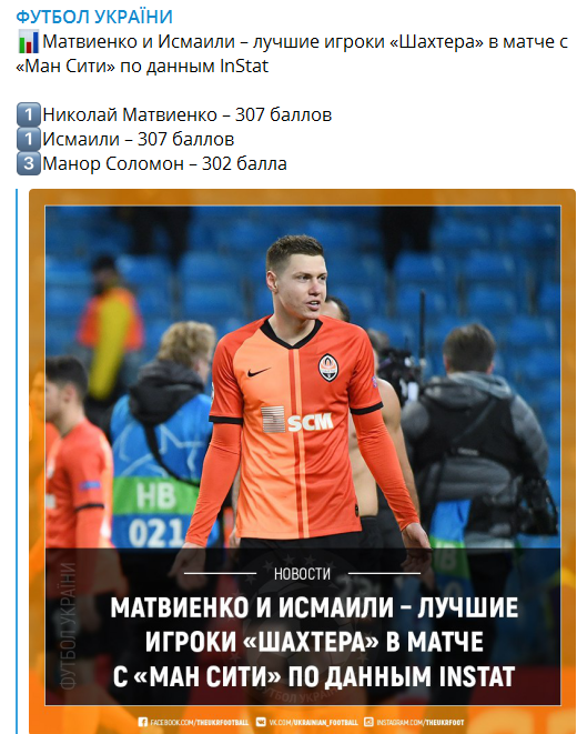 Ведущая спортивно-аналитическая компания мира InStat подвела итоги матча между Шахтером и Манчестер Сити  и назвала лучших игроков.