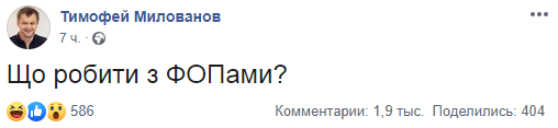 После того, как власть долго думала, что же делать с ФОПами, министр развития экономики просто взял и спросил об этом на своей странице в Facebook.Пост вызвал бурю откликов и комментариев. Собрали реакцию украинцев.