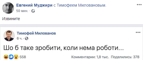 В Facebook появился аккаунт-двойник Милованова, на котором появляются посты-ответы министру. Например, чтобы такое сделать, если нет работы.
