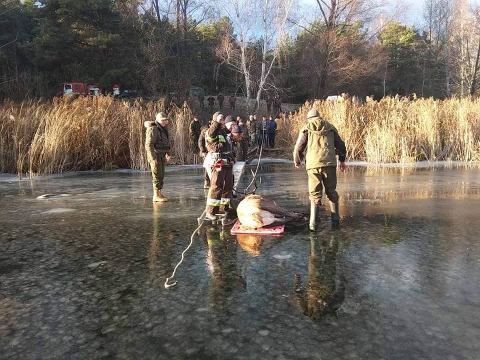 Бойцы ГСЧС под Киевом спасли оленя из ледового плена. Фото и видео