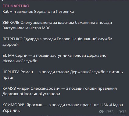 • Петренко Олега – с должности главы Национальной службы здоровья;