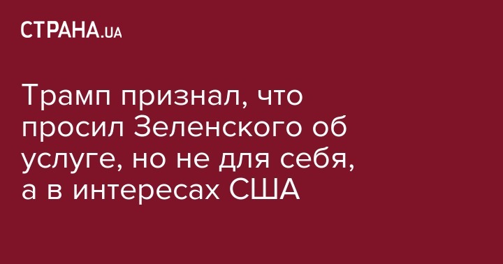 Президент США Дональд Трамп признался, что в телефонном разговоре с лидером Украины Владимиром Зеленским в июле 2019 года просил оказать услугу для Соединенных Штатов, а не для себя. Об этом глава Белого дома написал в своем аккаунте Twitter.