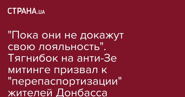 Олег Тягнибок националист и председатель партии ВО "Свобода" призвал к "перепаспортизации" жителей Донбасса "пока они не докажут свою лояльность".