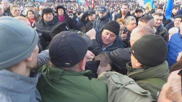 Видео инцидента можно увидеть в онлайн-трансляции митинга на странице главы "Европейской солидарности" в Facebook.