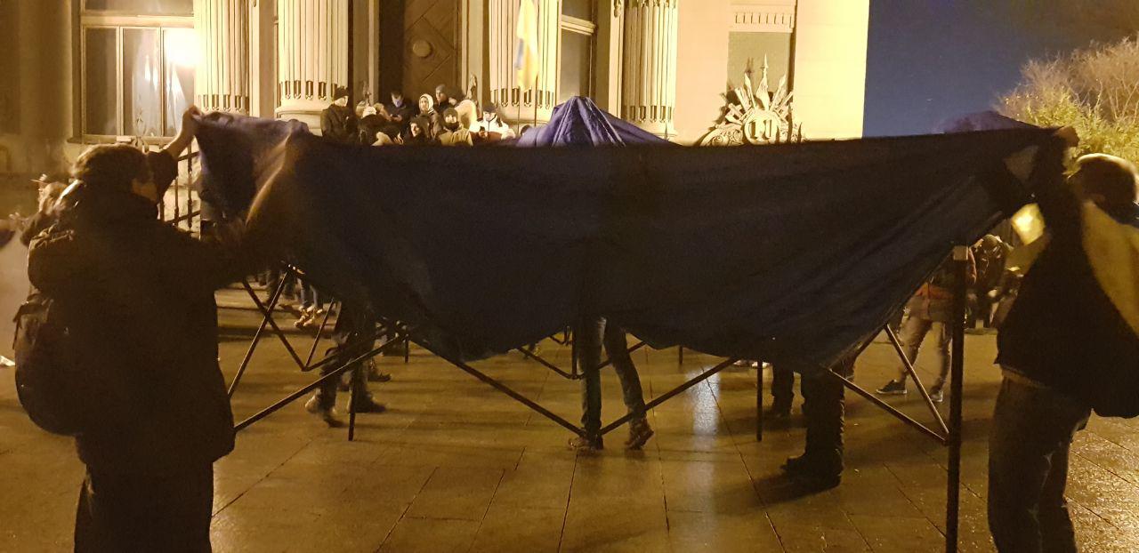 Участники разбили перед Офисом президента палатки, а также установили сцену, с которой выступают участники музыкальные коллективы.