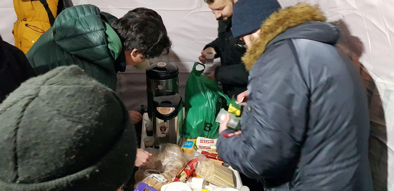В палатках, как сказал бы Зеленский - то ли томос, то ли термос. Из этих палаток раздают чай и печенье.