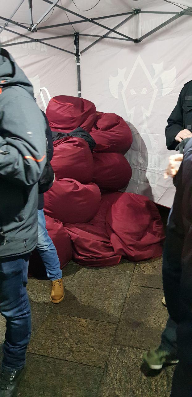 21:20  Наконец-то "Нацкорпус" построил свою супер-палатку.